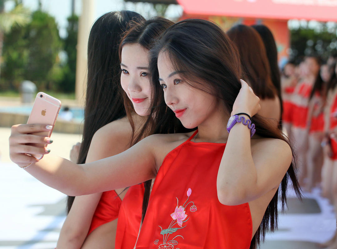 游客现场领略"中式比基尼"美女秀,眼睛看直。"肚兜节",有数百名身材火辣的网红和模特参加。主办方介绍,"首届肚兜节"活动旨在结合传统中国风,用最典型的东方女性形象呼吁大家关爱女性。