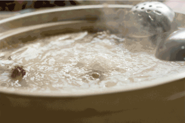 汤底一滚,咱们就可以往里涮肉啦,熟了的驴肉颜色也是粉粉的哦!