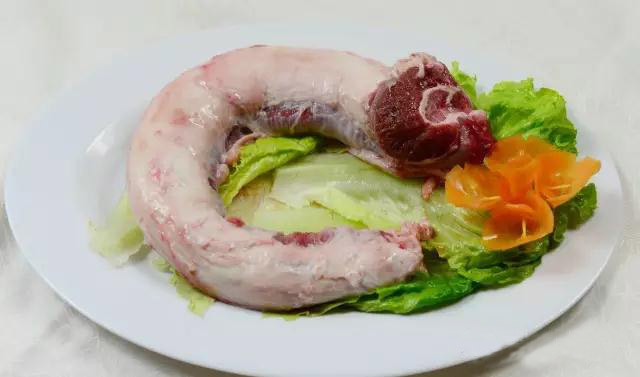 驴肠:驴肠可是驴八珍之首,因为其好吃而且肥而不腻,故在民间有“能舍孩子娘,不舍驴板肠”之说~!非常有嚼劲而且很q,不过还是要蘸上小编特制的酱料才是最好吃!